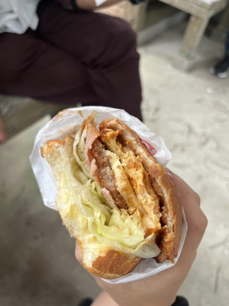 松原の中にある創業50年以上のからつバーガー!大人気ですっごい並んでた!