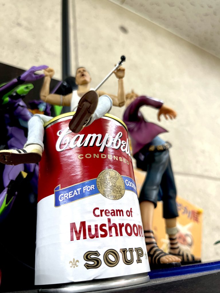 沖縄限定パッケージのキャンベルスープ缶もゲットしたので、お久しぶりに登場のフレディ君の指定席になってもらいました( *´艸`)